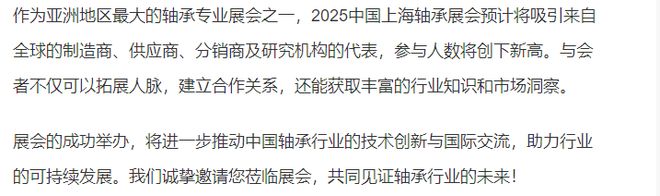 1、轴承制品展区:标准轴承、专用轴承、特殊轴承、汽车轴承、直线、轴承设备展区:数控机床及车床、磨具磨料、磨削及超精研机、锻压机械、热处理与表面处理设备、检验、测量和试验设备、智能制造及柔性轴承生产线日在国家会展中心(虹桥)盛大举行。
